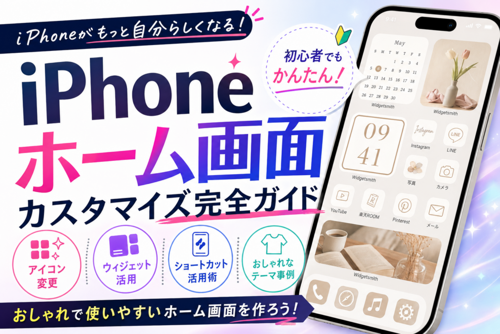 iPhoneのホーム画面をおしゃれに整理・カスタマイズする方法を解説。フォルダ作成、アプリアイコンの変更、壁紙設定、ウィジェット追加、アプリライブラリの活用まで完全ガイド。 -