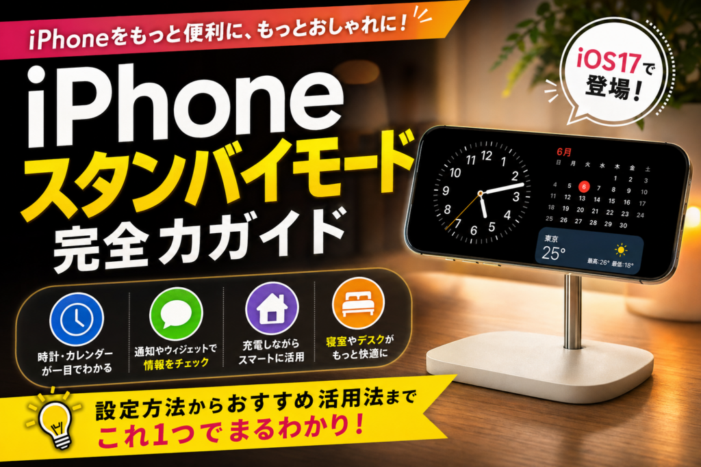 スタンバイ(StandBy)はiOS 17で追加されたiPhoneの新機能です。充電中に横向きにするだけで、時計・カレンダー・写真・ウィジェットなどを大きく表示するデジタルサイネージのような画面に変わります。この記事では設定方法からカスタマイズ術まで徹底解...