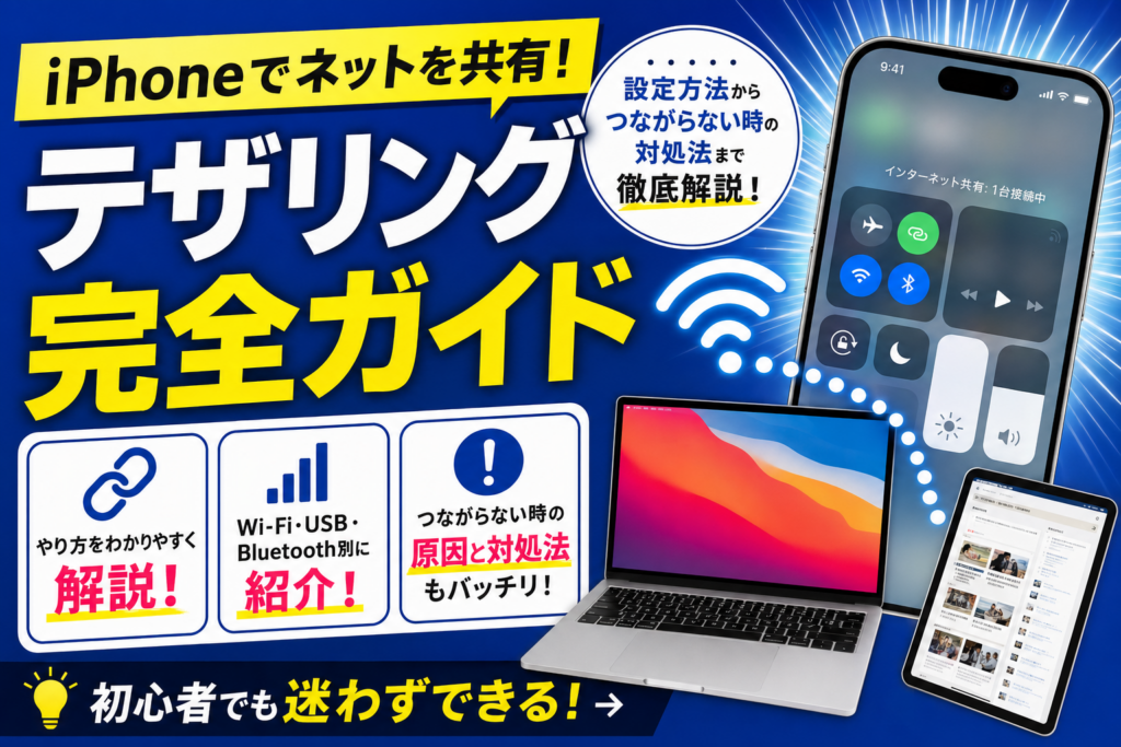 iPhoneのテザリング(インターネット共有)設定完全ガイド|Wi-Fi・Bluetooth・USB接続方法