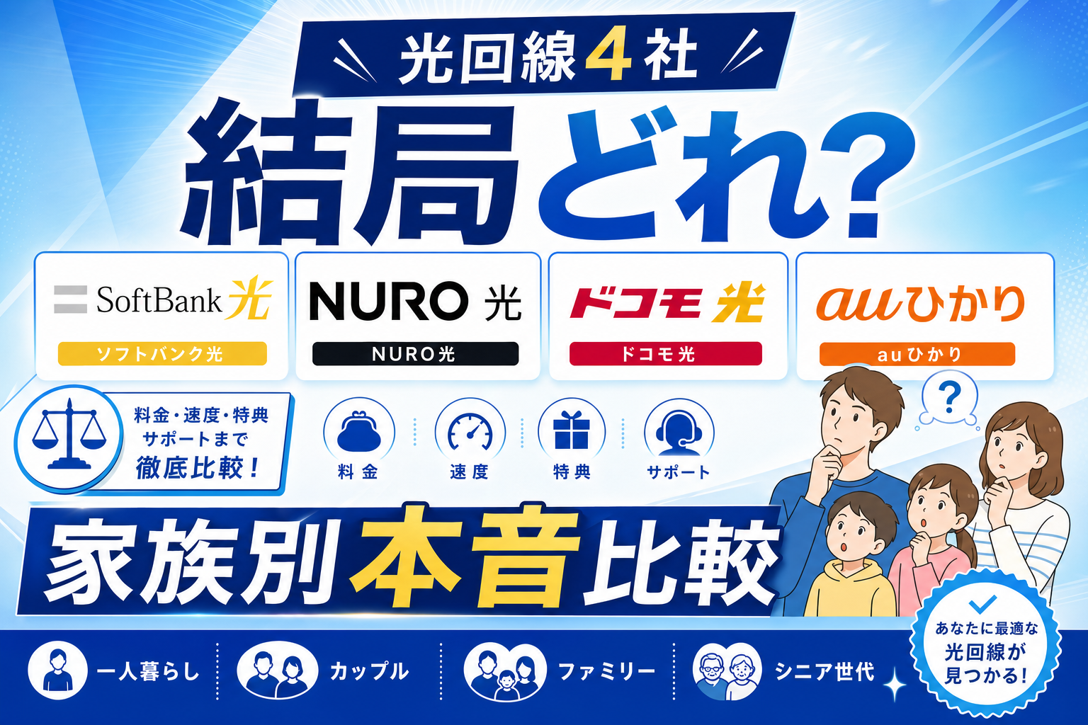 SoftBank光・NURO光・ドコモ光・auひかり、結局どれ?妻ワイモバ娘楽天で家族別に見た本音比較【2026年4月】