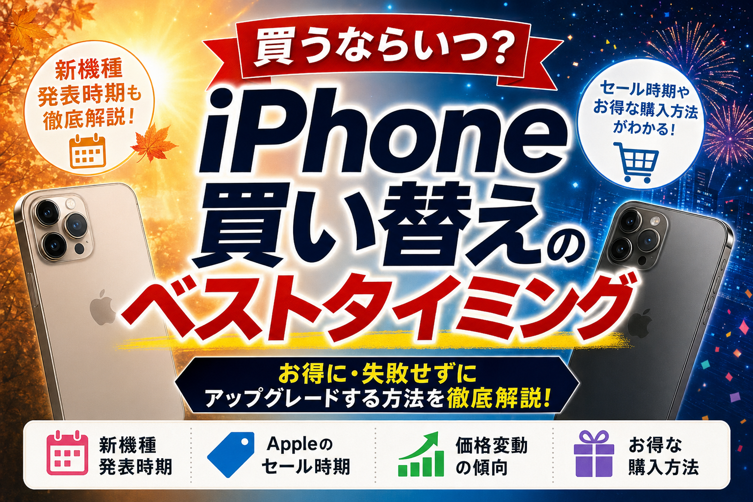✅ 最もお得:新機種発売直後(9月〜10月)
