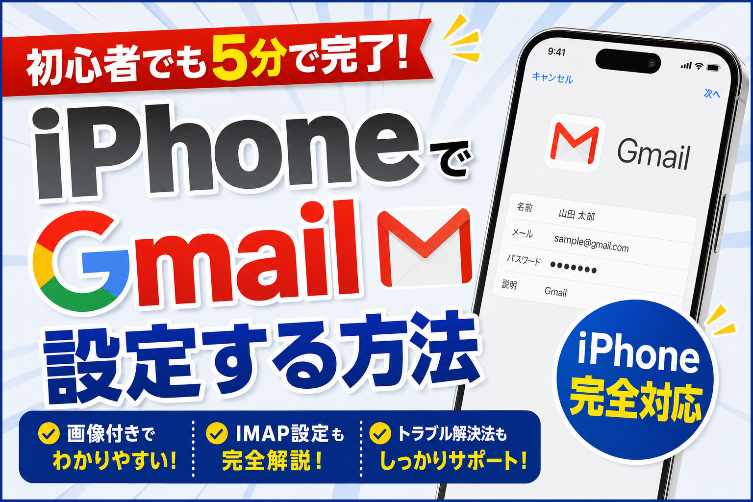 iPhoneでGmailを使う方法は2つ、「Gmailアプリ」と「iPhoneの標準メールアプリへの追加」。それぞれの設定方法とプッシュ通知・複数アカウント・署名の設定まで徹底解説します。