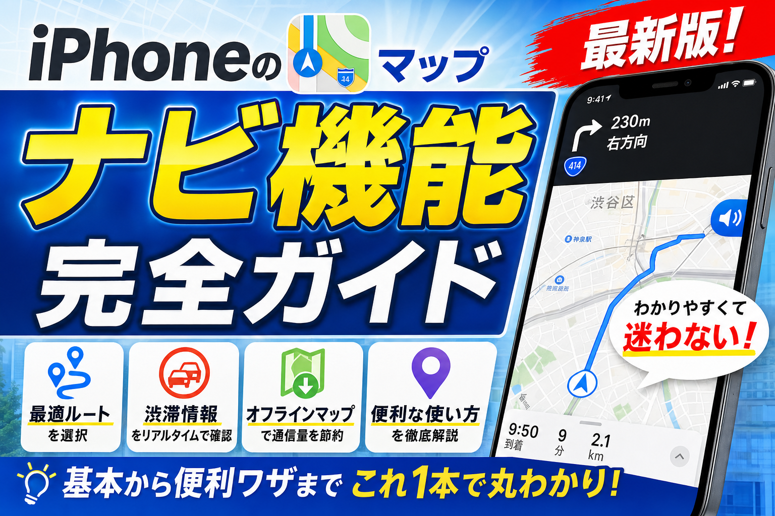 「iPhoneのマップアプリをもっと使いこなしたい」「経由地を追加してルートを設定したい」「オフラインマップってできる?」「Googleマップとどっちがいい?」…そんな疑問、この記事で全部解決します!