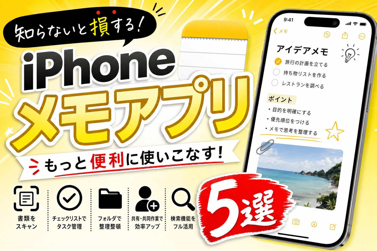 iPhoneメモアプリ活用法5選|スキャン・チェックリスト・ロックメモまで完全解説