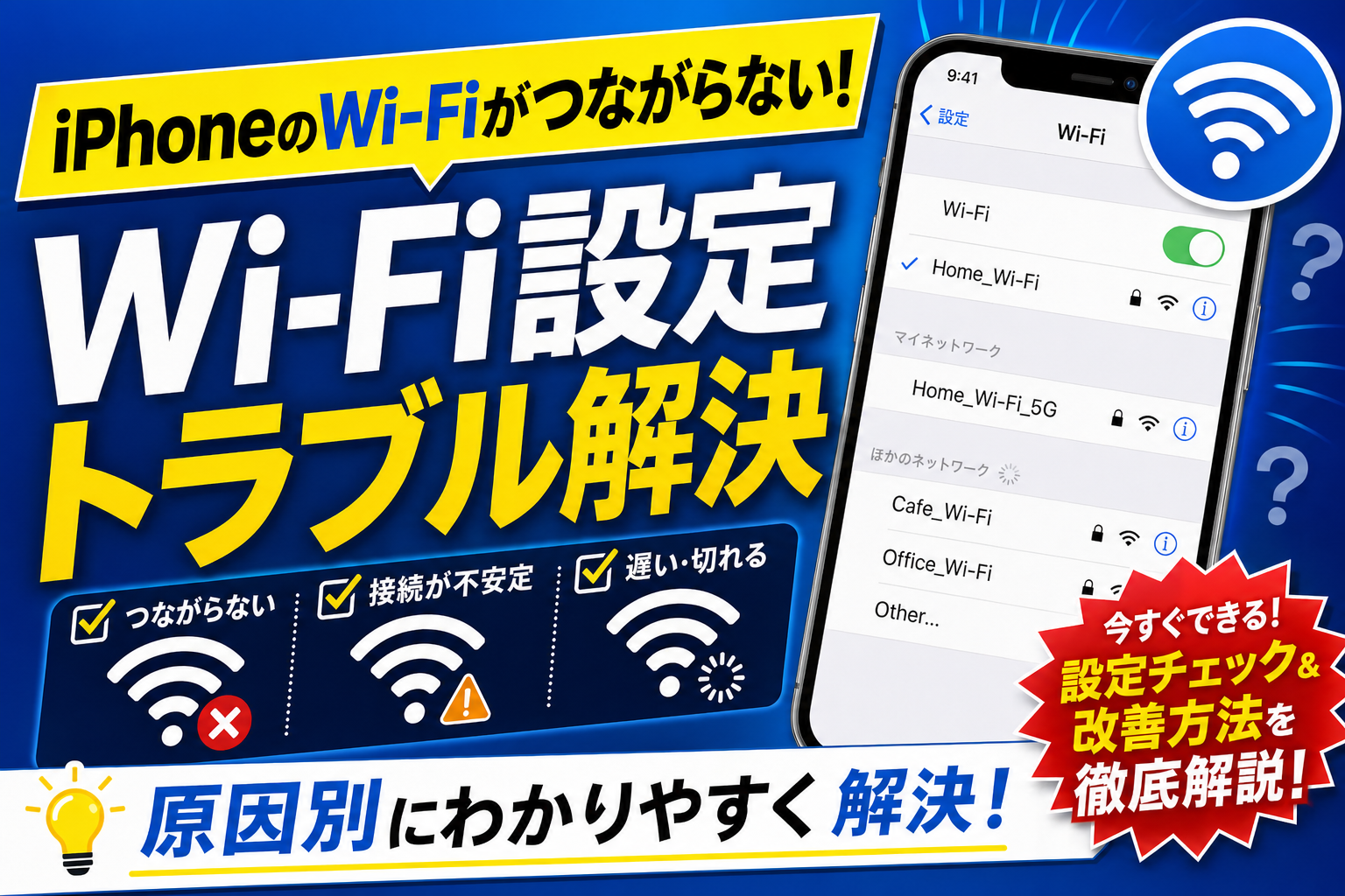 iPhoneのWi-Fi接続トラブルは意外とシンプルな操作で解決できます。繋がらない原因と対処法を順番に試すだけで、ほとんどのケースは解決します。この記事では基本設定から上級トラブルシューティングまでわかりやすく解説します。